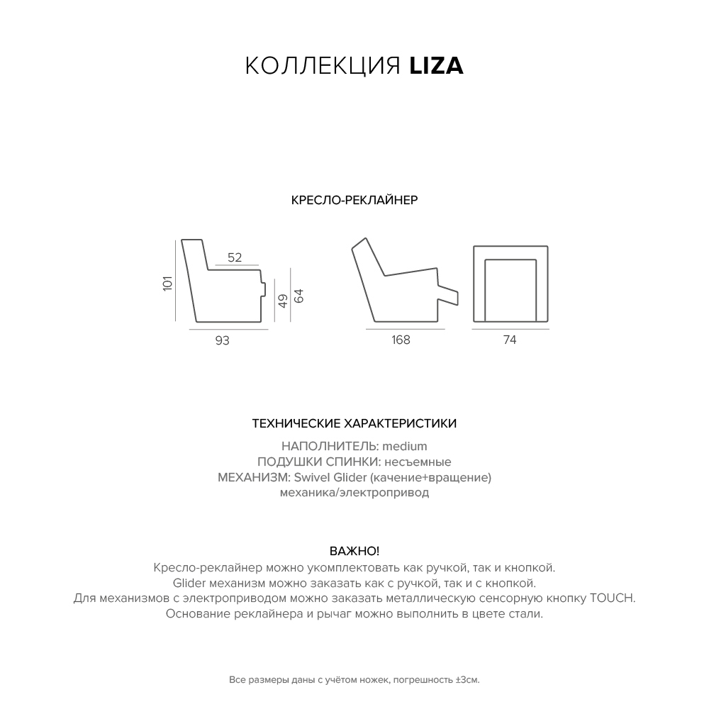 Скандинавская сдержанность и мягкие углы подлокотников – актуальные формы, которые не выйдут из моды, придадут интерьеру уют и создадут уютную атмосферу. Не смотря на изящный образ, кресло имеет прочный каркас из массива хвойных пород и надежный металлический механизм, который обеспечивает долговечную бесшумную работу и невероятно комфортный отдых. Вращающееся основание и гибкие настройки регулировки позволяют легко менять положение и отдыхать не только сидя, но и лежа. Элегантное кресло будет уместно в гостиной, каминной зоне, в кабинете или спальне. Эргономичная модель идеально подойдет для чтения книги, просмотра фильма, укачивания малыша или непродолжительного сна. Опционально доступны электрический механизм и сенсорная кнопка для максимального простого управления.