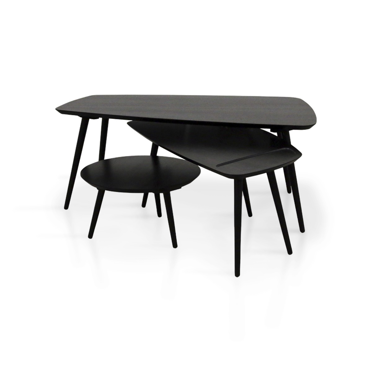 У NARVIK практичный и независимый дизайн: круглый стол небольшого диаметра и многоугольники с разновеликими сторонами обтекаемой формы легко встраиваются в интерьер. Три параметра высоты позволяют широко использовать предметы в интерьере: круглый NARVIC в качестве прикроватного столика; как персональный столик у кресла; для вазы или комнатного растения, аквариума или светильника. Стол со столешницей среднего размера имеет большую поверхность и выемку для предметов, которые необходимо уберечь от падения. Он пригодится не только в гостиной, но и в детской — за ним удобно рисовать и лепить. Стол с большой столешницей вытянутой формы не только войдёт в обстановку гостиной, но им поможет оформить зону отдыха в минималистичном азиатском стиле. Округлые деревянные ножки расставлены широко и под углом, а благодаря оригинальным столешницам, опоры складываются в ассиметричные рисунки с разных ракурсов. Край столешницы скошен внутрь — изящное решение лейтмотива в дизайне NARVIK — многогранного «объёма». Формы и размеры взаимосвязаны и удачно взаимодействуют друг с другом. Динамичная композиция из трёх разноуровневых столиков — частый атрибут скандинавского стиля. NARVIK станет естественной частью обстановки в эко-стиле и ретро-интерьеров. Дополнительные поверхности всегда кстати в просторных квартирах и загородных домах.