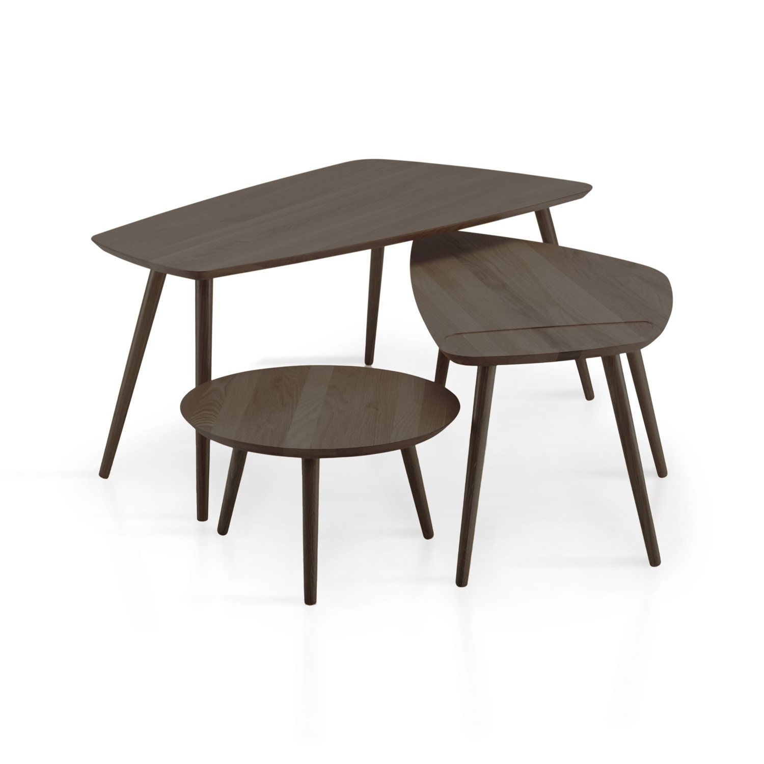 Журнальные столы NARVIK изготавливают из массива дуба. В коллекции представлены три формы столешниц разного размера. Любой NARVIK может быть высотой 25 см, 38 см или 45 см. Журнальные столики тонируют в пять оттенков: чёрный, промасленный или лакированный дуб, nordic oak, smoked oak.
