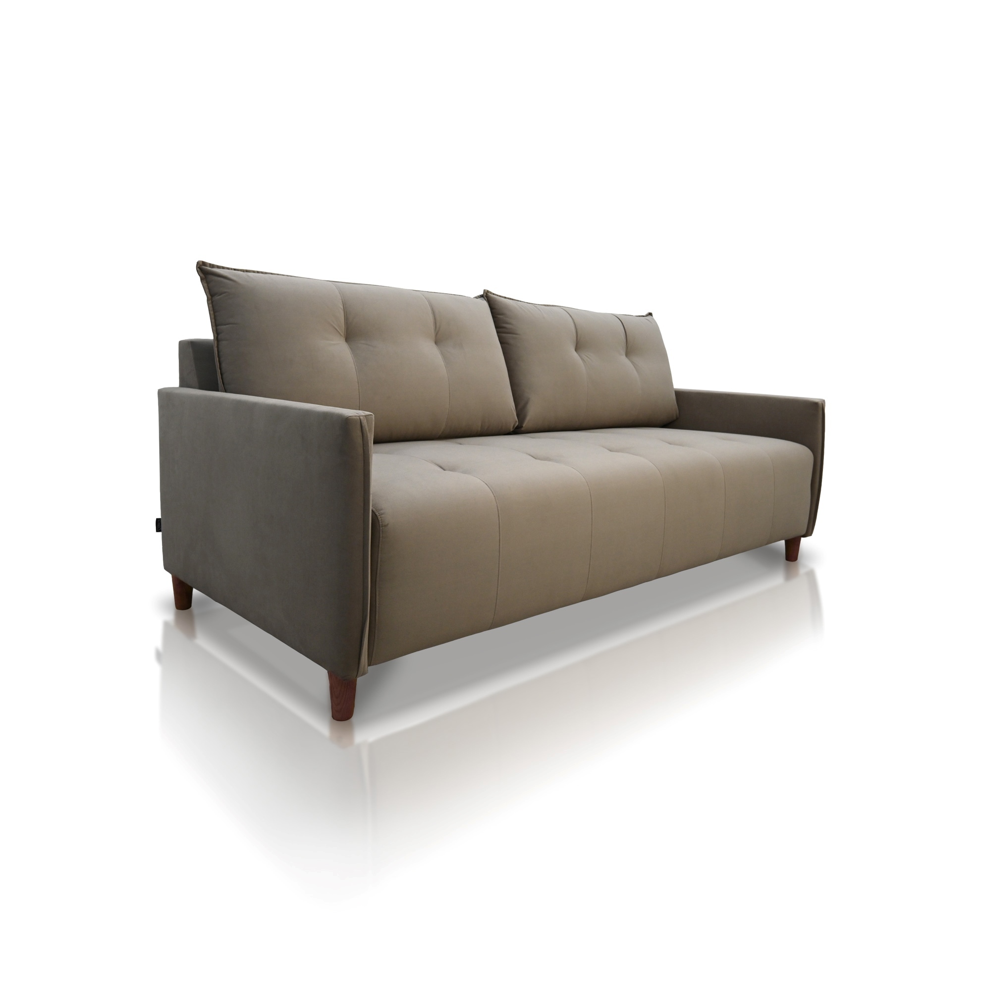 Сдержанный, но обаятельный диван Sella выглядит просто только на первый взгляд. В меру заметная утяжка на подушках и сиденье придаёт легкий объём и фактуру поверхности. Прямой диван Sella укомплектован механизмом трансформации FLIP, установлен на деревянные округлые ножки.
