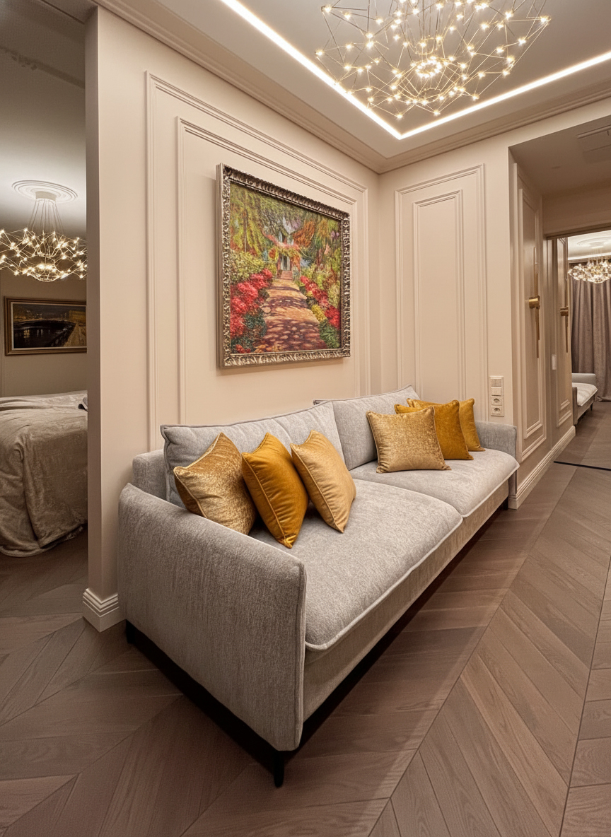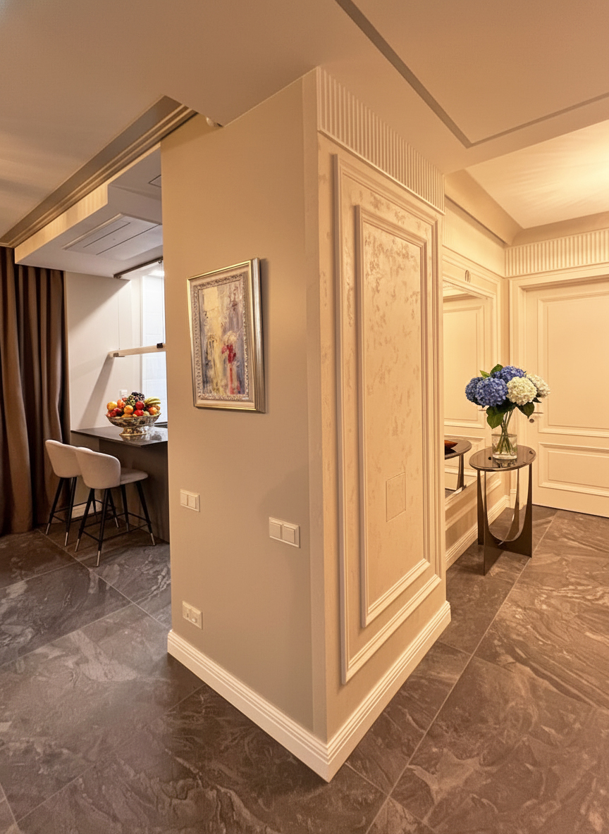 Квартира в престижном районе на Крестовском острове выполнена в неоклассике – признанной и проверенной временем. Сомнений при выборе стилистического решения у дизайнеров не было: архитектура дома, статус его хозяев, их мировоззрение и художественные предпочтения – все это однозначно продиктовало выбор неоклассического стиля.